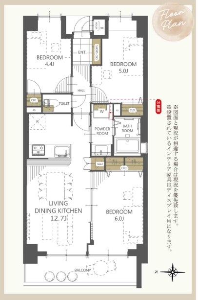 建物面積 59.92㎡ 壁心 / 間取り 3LDK